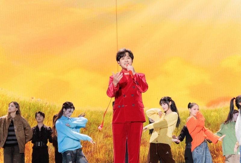 导演组采用了“极简聚焦”方案——除去繁杂的灯光特效,在关键时刻仅用一道温暖的金色光束笼罩歌手,象征新年曙光。