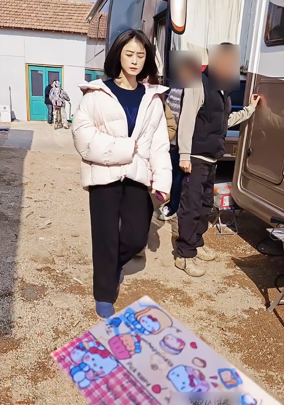 蒋欣拍戏路透认不出,皮肉松垮身材臃肿,穿蓝棉鞋四边齐好老气