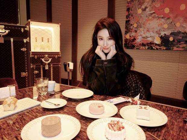 1月29日,刘亦菲在社交平台上释出美照,她悠闲地享用下午茶,品尝甜点,拍照时双手托脸可爱,面露微笑!