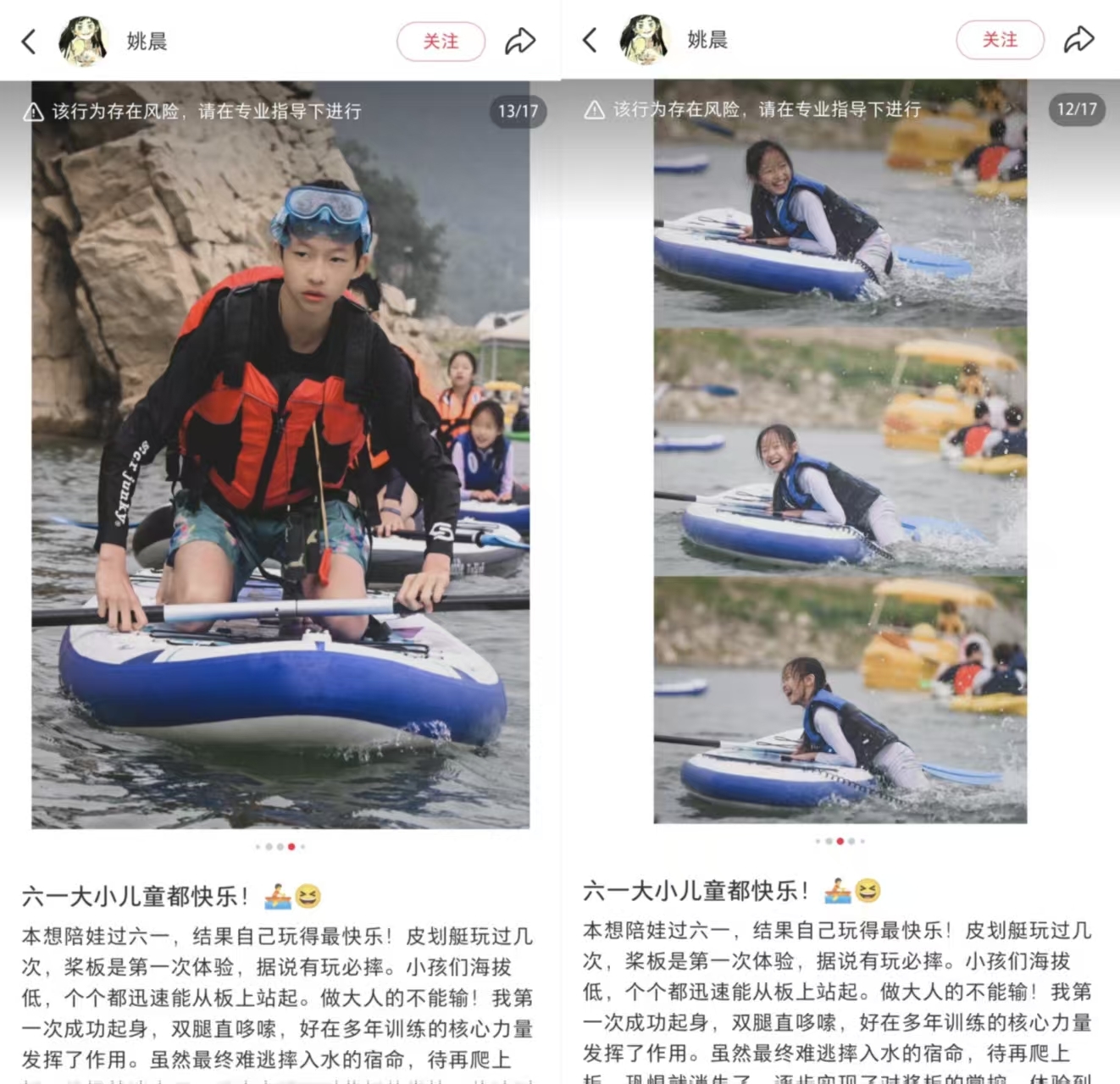 此前,姚晨一双儿女近照曾被曝光,当时12岁的小土豆身高超过一米七,女儿小茉莉样貌神似两人。(小尼尼穿帮)。姚晨本人也会经常在社交平台上晒出与儿子和女儿的日常。