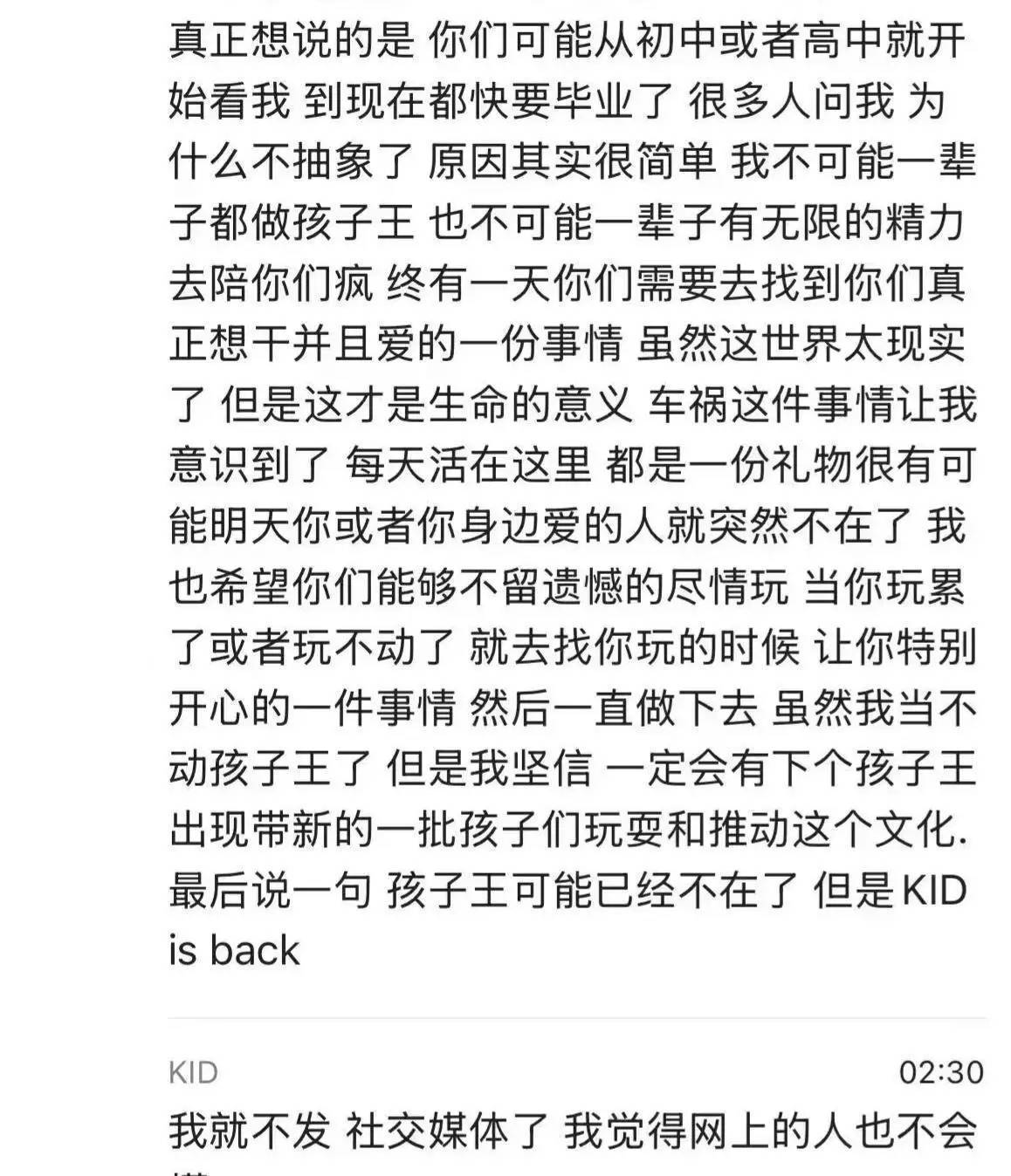 据悉,一个月前孩子王被传在美国因车祸去世,有知情人士透露,当时孩子王的母亲已在个人朋友圈发布了相关讣告。