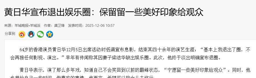 老戏骨黄日华官宣彻底退圈,好多人不敢信