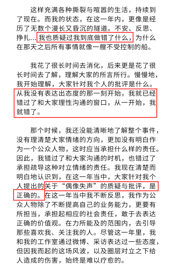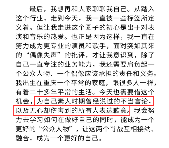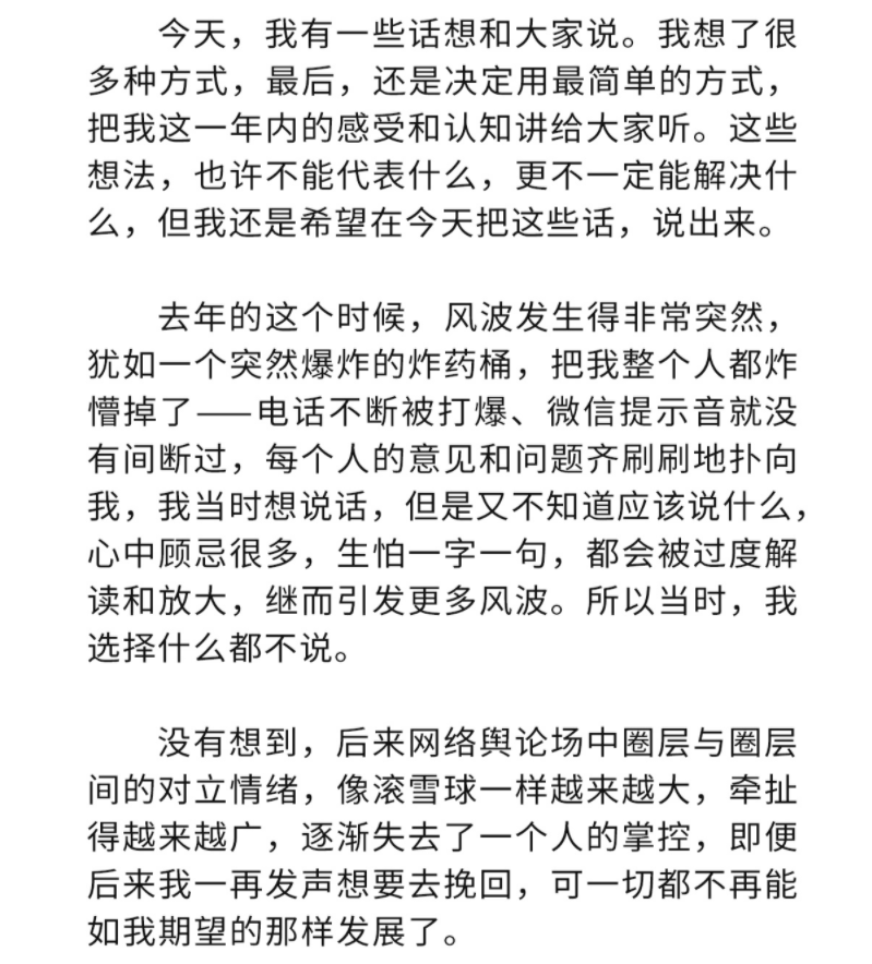 这篇道歉长文是给受害者的,其实也是给他自己的。