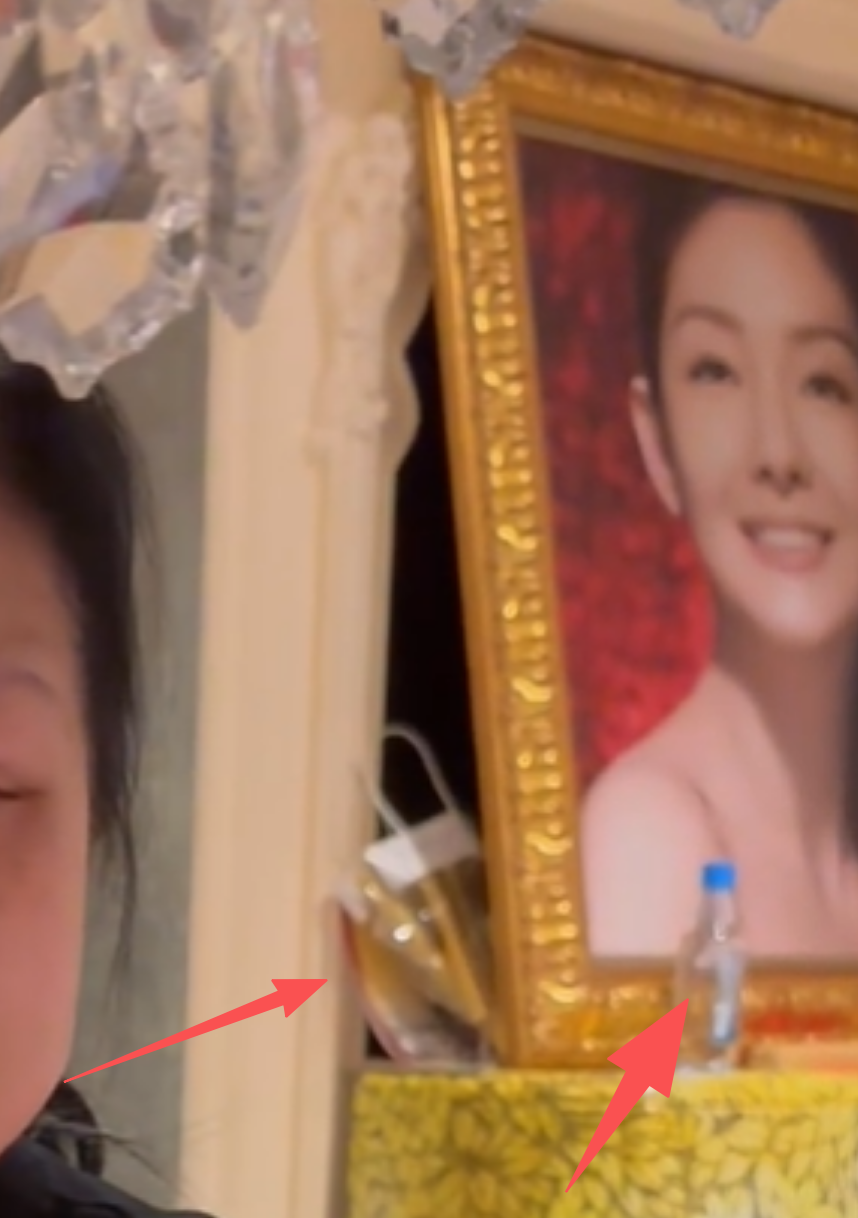 但也有细心的网友发现,大S的相框摆放也并不是很用心,相框侧前方还有一瓶水,看着似乎还是喝过的样子。相框后面也塞了一个透明的袋子,不像是礼物或者供品,反倒像是杂物没地方放了,随便放一下。