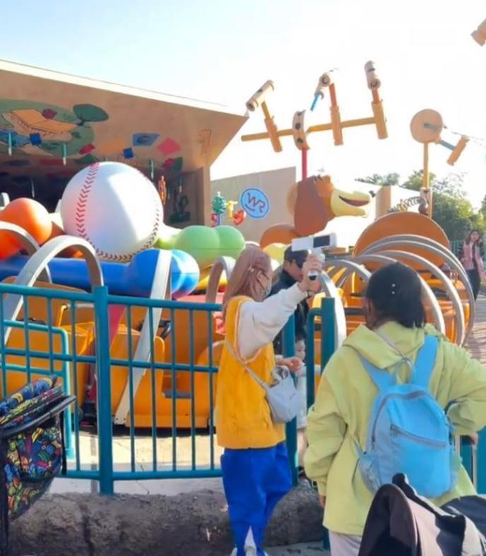 上海迪士尼乐园的出口处,苗苗举着相机对准游乐场方向。黄色上衣搭配蓝色长裤,新染的头发在阳光下格外醒目。她不断调整镜头焦距,捕捉着从游乐场里走出来的身影:郑恺右手牵着大女儿安娜,左手拉着儿子宣宣,正大步穿过人群。这位曾经的“夜店小王子”现在一手一个孩子,动作熟练得像职业保姆。