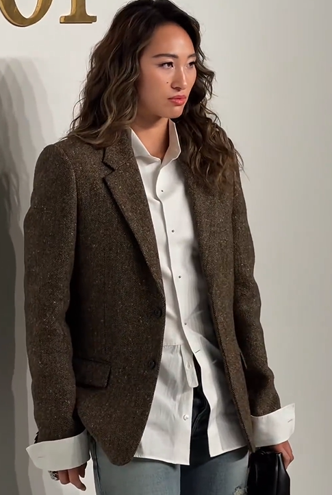 这次活动上,郑钦文穿着打扮还是挺简单的,棕色西装搭配牛仔裤,松弛感拉满。