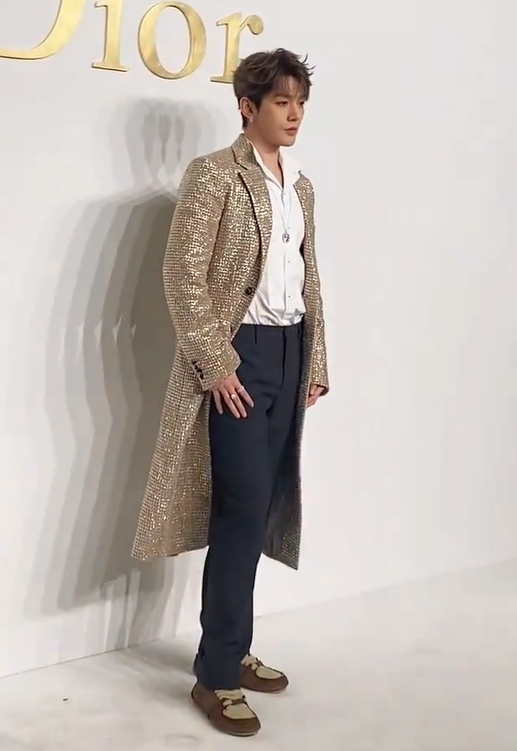 比如流量小生邓为,身穿价值20万美金的手工金色大衣,高大挺拔的身材就跟衣架子一样,穿什么都自带气场,确实颜值很抢眼啊。