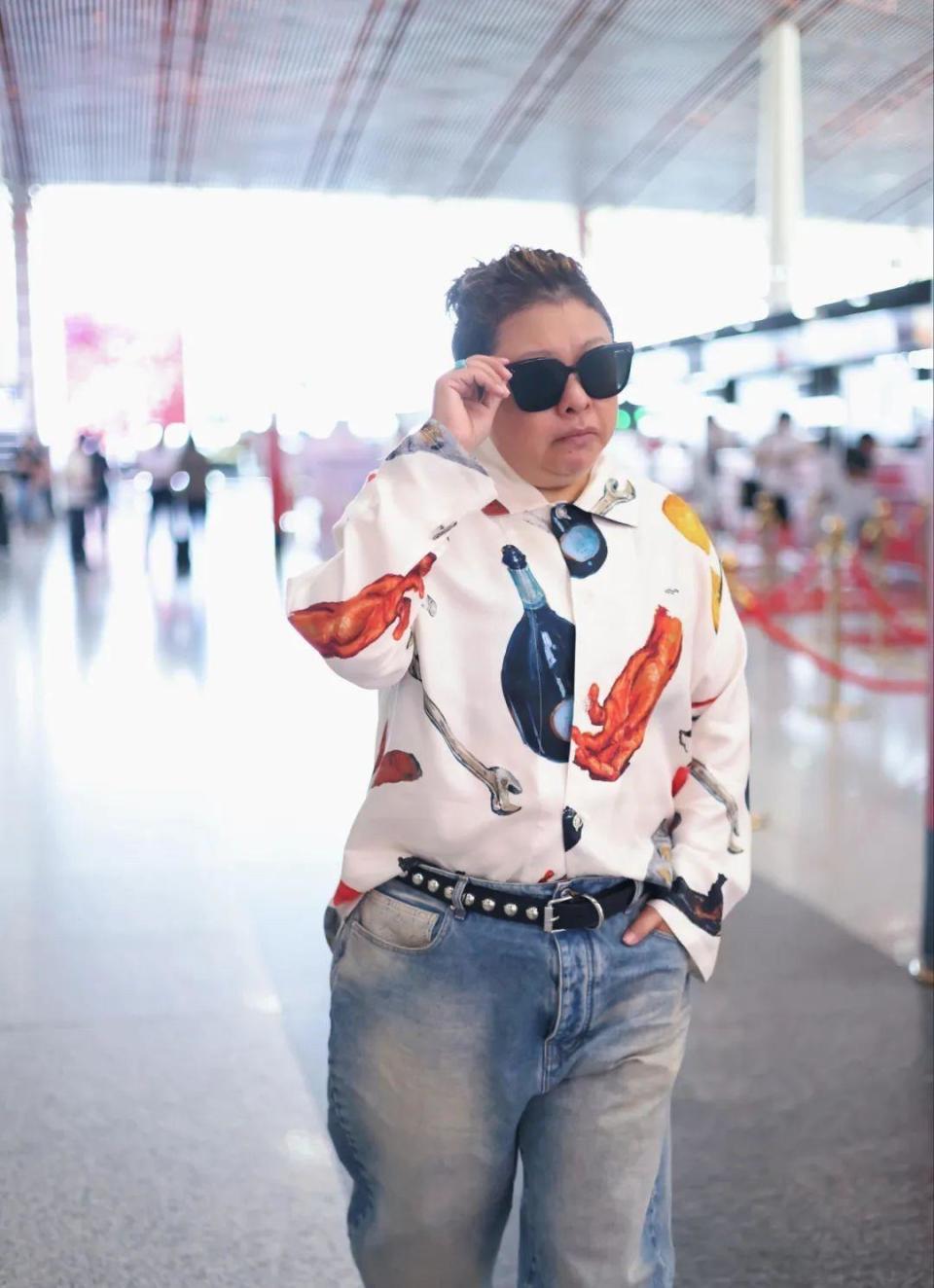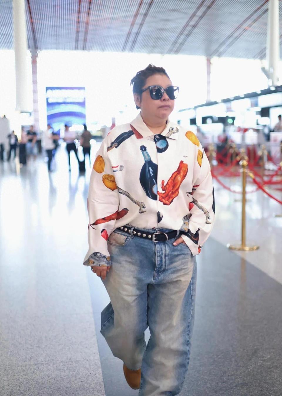 最近,韩红的一组机场生图刷屏了。照片里,55岁的她身穿一件艺术感花纹的白底衬衫,下摆利落地扎进水洗牛仔裤里,头发向后梳得整整齐齐,再配上一副黑墨镜。这身行头,跟她过去几十年留给大众的“军大衣”、“宽松T恤”形象,简直判若两人。