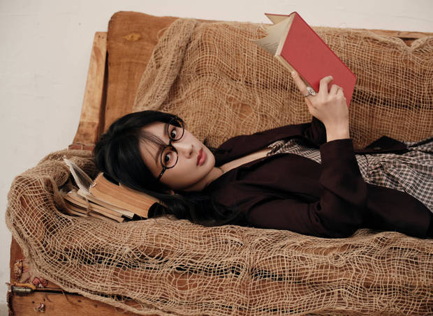 杨紫躺在沙发上看书,文艺气质拉满。