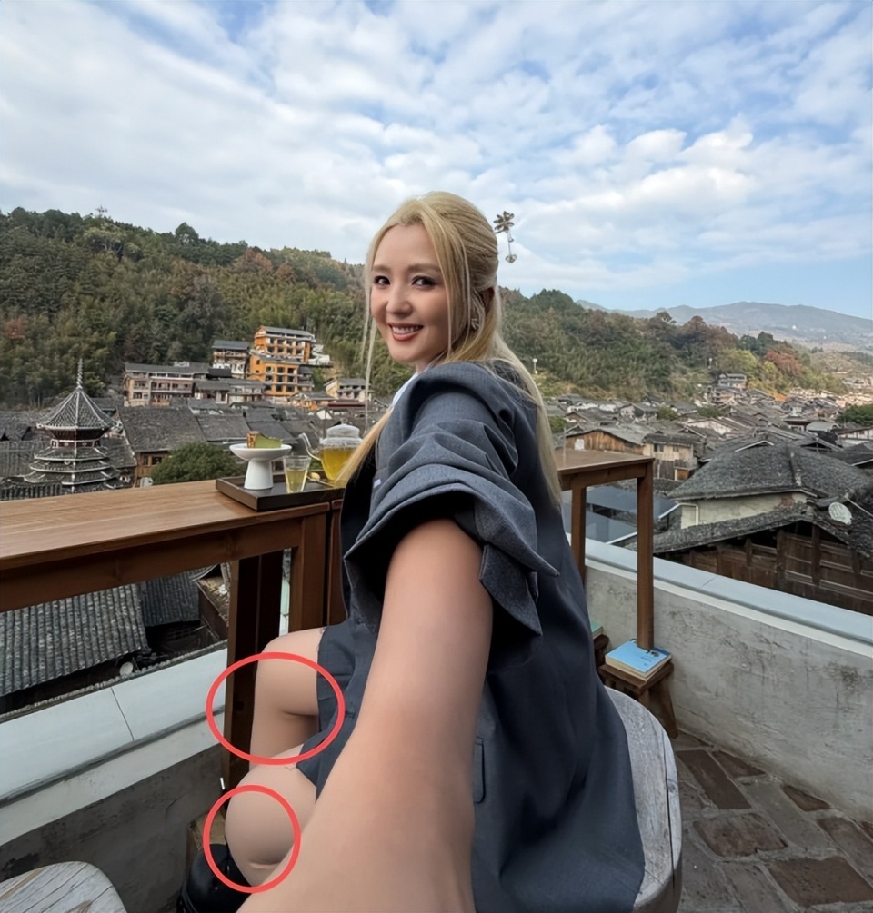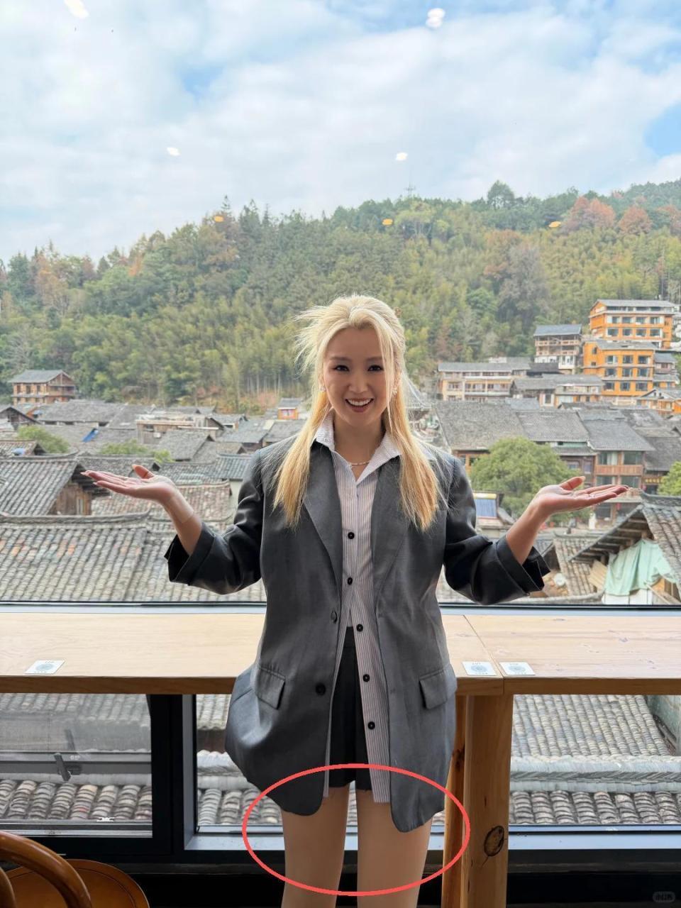 何洁回贵州过节!丝袜起褶被嘲土气,P图翻车双腿粗细不同真尴尬